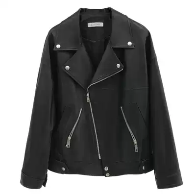 CC fur locomotive suit collar imported sheep leather jacket women's spring new Korean leather jacket short