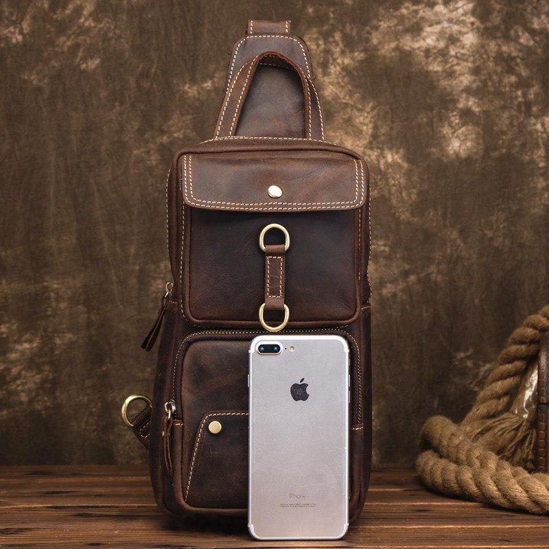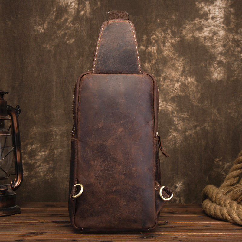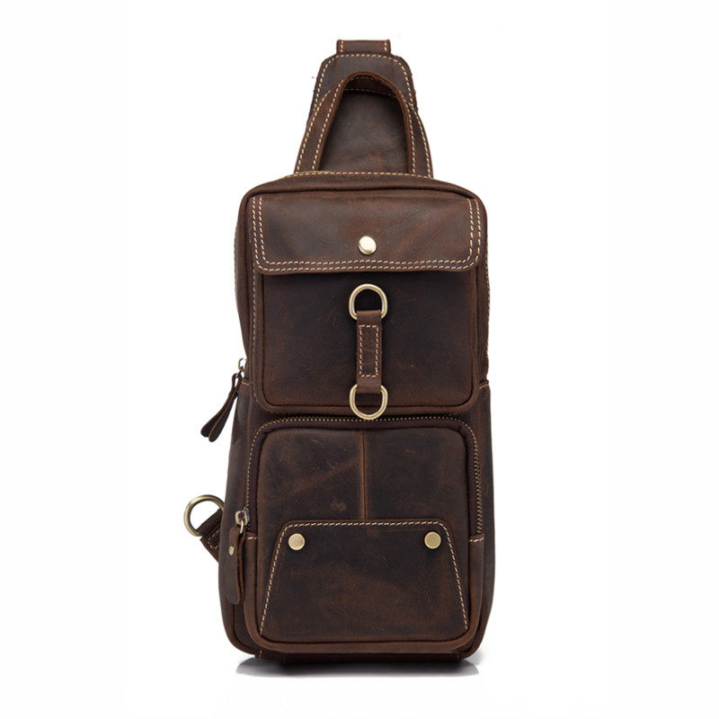Original Retro Crazy Mappetide Men's Chest Bag Genuine Leather Single Shoulder Skewed Satchel Personality of the Bull Leather Locomotive Bag