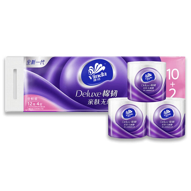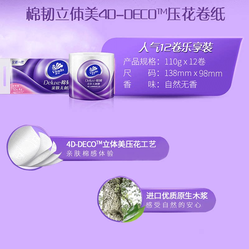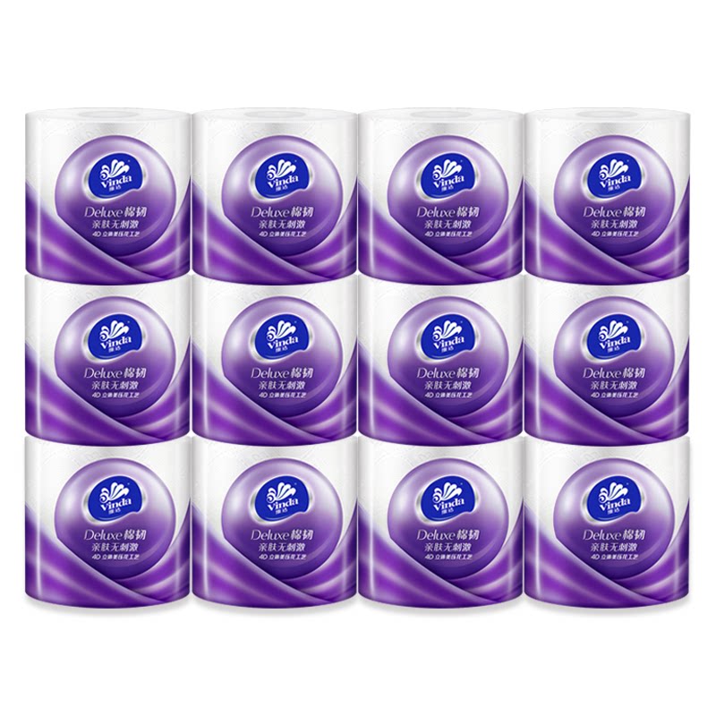 Vinda roll toilet paper Cotton tough three-dimensional beauty core roll toilet paper 110g12 roll Affordable family pack Household toilet paper roll paper