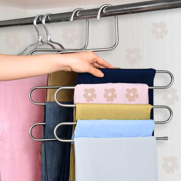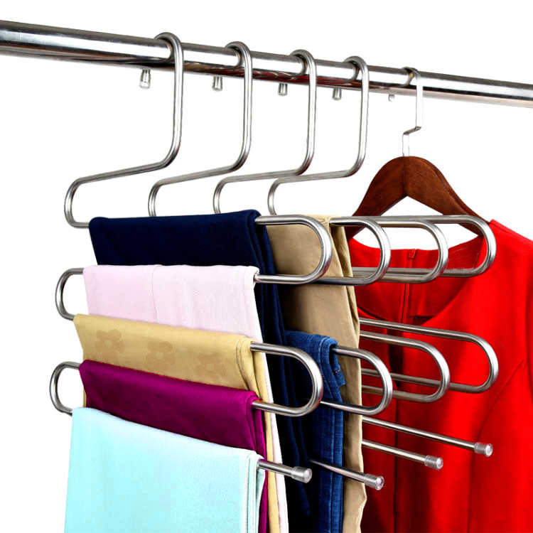 Stainless steel pants rack drying rack Clothes hanger pants clip Multi-layer pants rack Scarf hanger Multi-function pants hanging drying rack