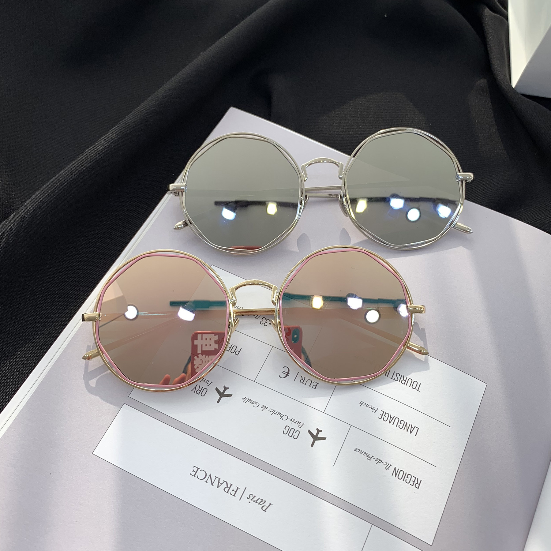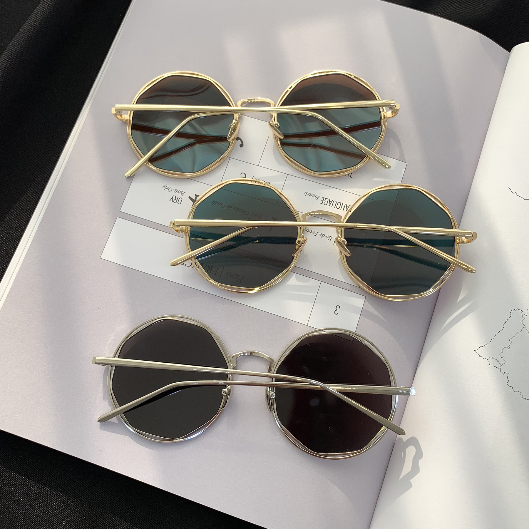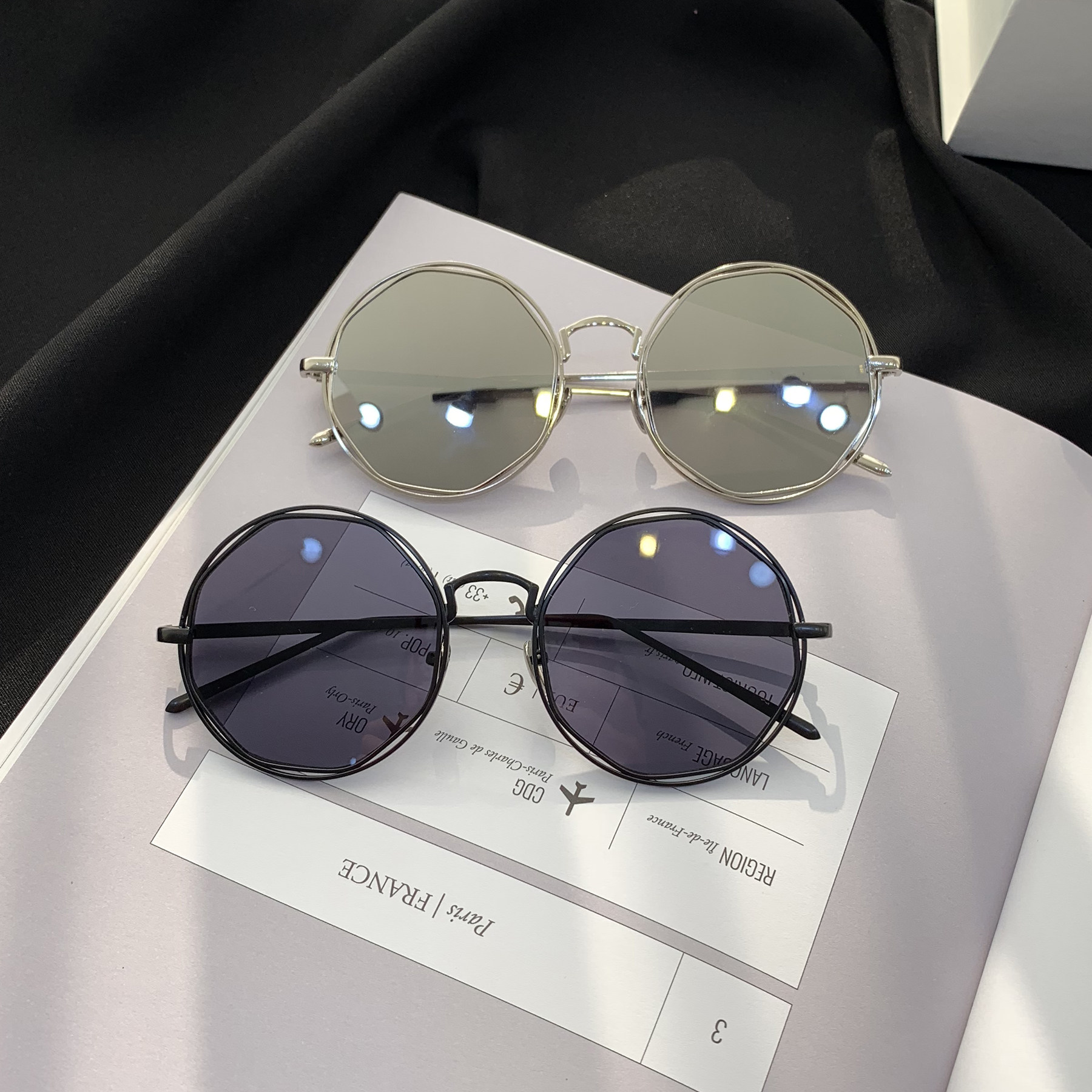 Retro metal hollowed-out round sunglasses 2019 original accommodation large frame long face round face wave men's glasses 100 lap sun glasses female