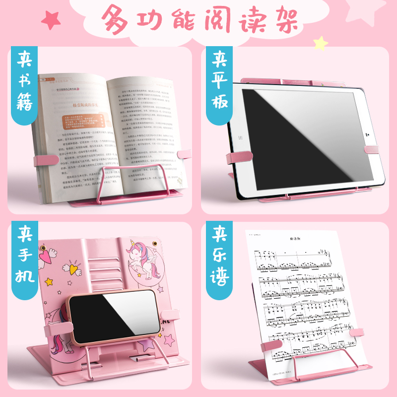 Children's reading shelf multi-functional reading shelf table reading bracket adjustable simple bookshelf Primary school students use book flip book clip books by the book stand clip book holder to put books on the shelf examination and research artifact