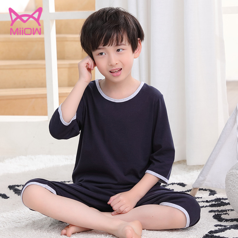 Boys 'home clothes Pure cotton Girls' short-sleeved pajamas set 3 air conditioning clothes 6-9 years old 12 children 15 spring and autumn and summer thin models