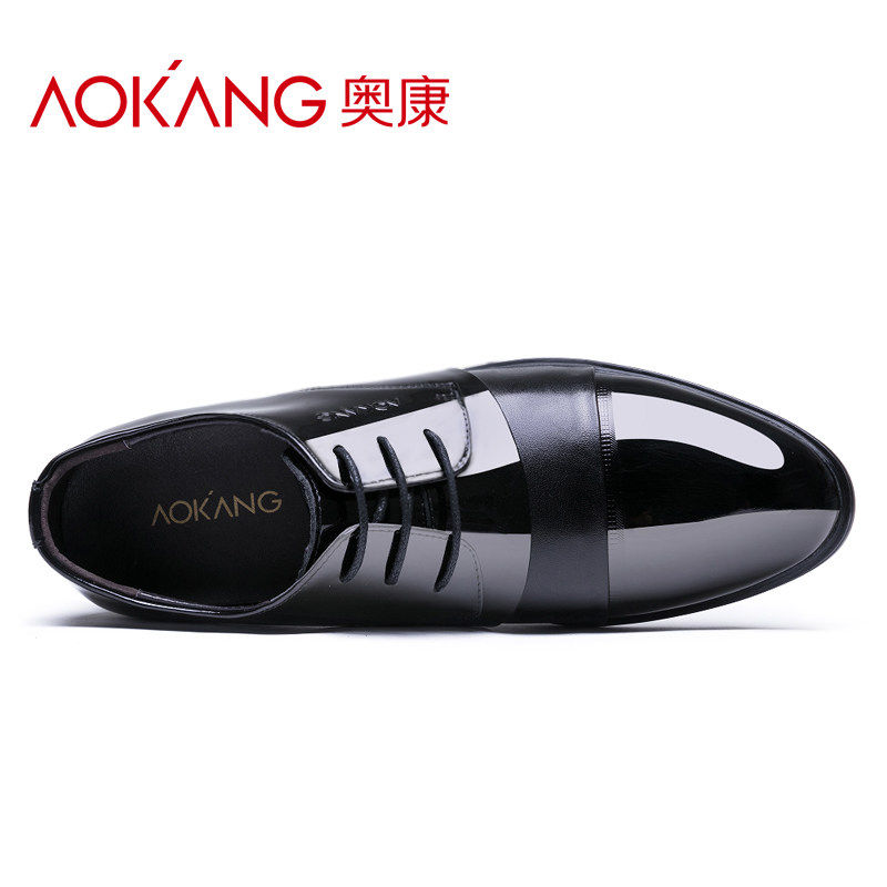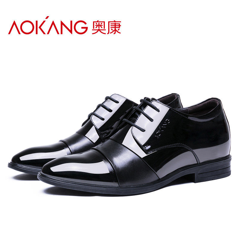 Okom Men's Shoes New Business Positive Dress Casual Leather Shoes Men's Flat Heel Genuine Leather Black Inner Heightening 6cm Men's Shoes