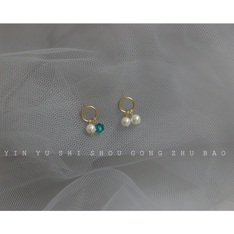 Korean version of pearl earrings 925 silver note 14k gold emerald ear pin personality retro simple all-match small earrings
