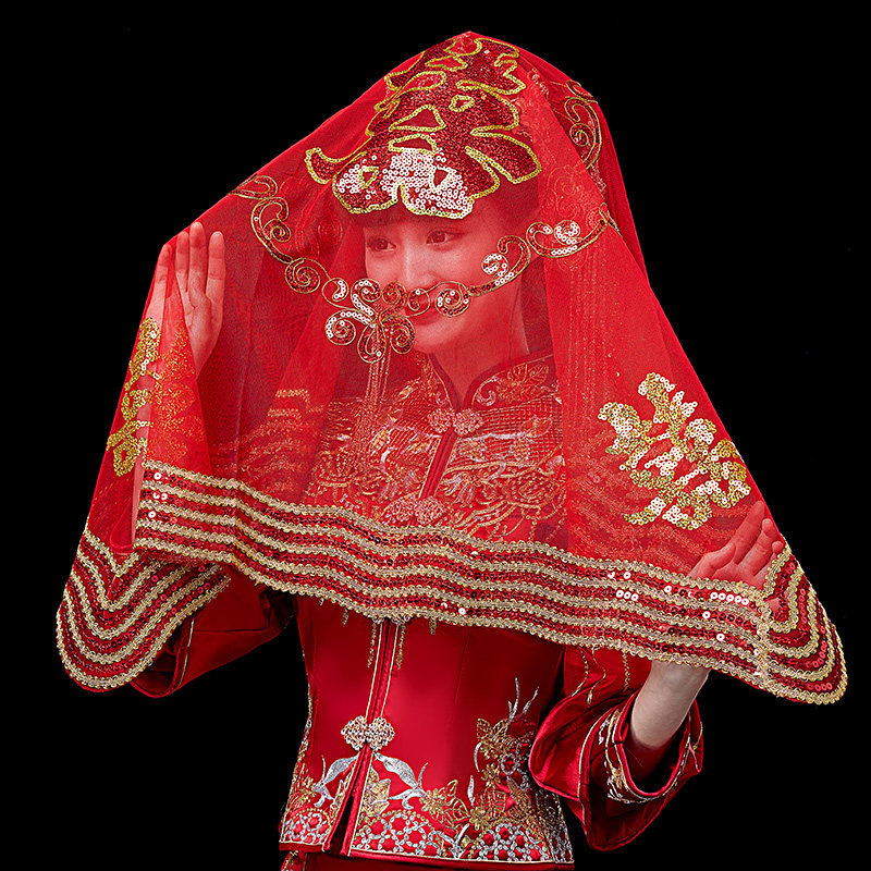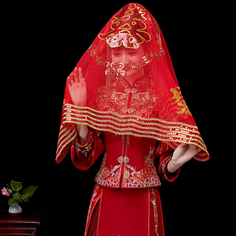 Xiuhe dress red hijab wedding hijab bride red mask turban 2019 new transparent high-grade lace classic