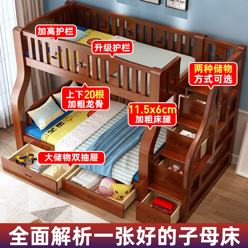 All solid wood children, two floors, upper and lower beds, adult high and low beds, bunk beds, mother and child, double upper and lower wooden beds, mother and child beds