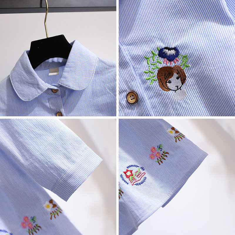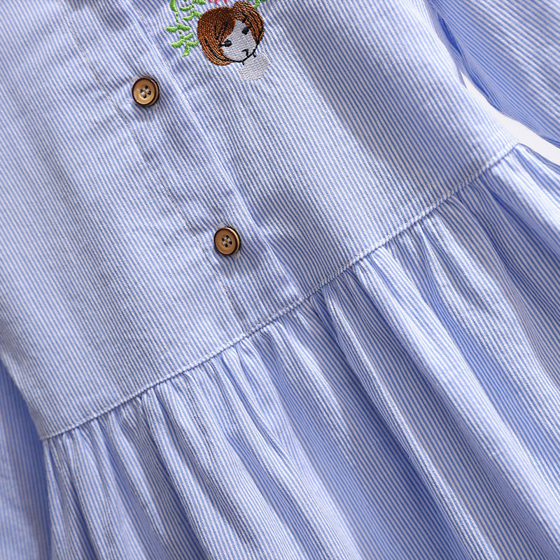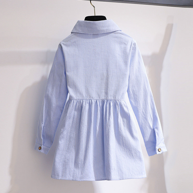 Girls' Medium Long Stripe Shirt 2021 Spring and Autumn New Korean Tide Children Long Sleeve Cotton Shirt Dress