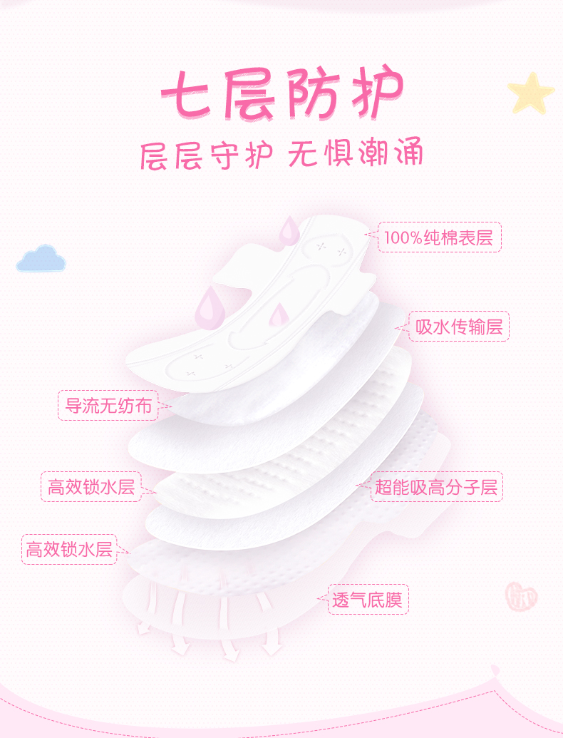 Seven degrees of space super long night with 420 sanitary napkins lengthened 338 aunt towels 28 pieces of leak-proof flagship store combination