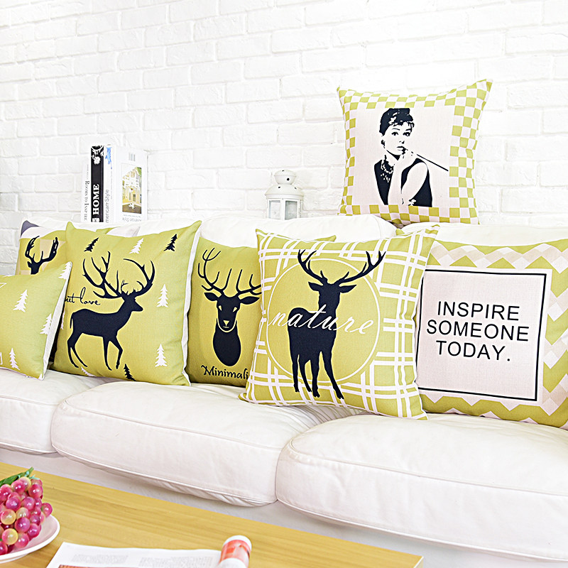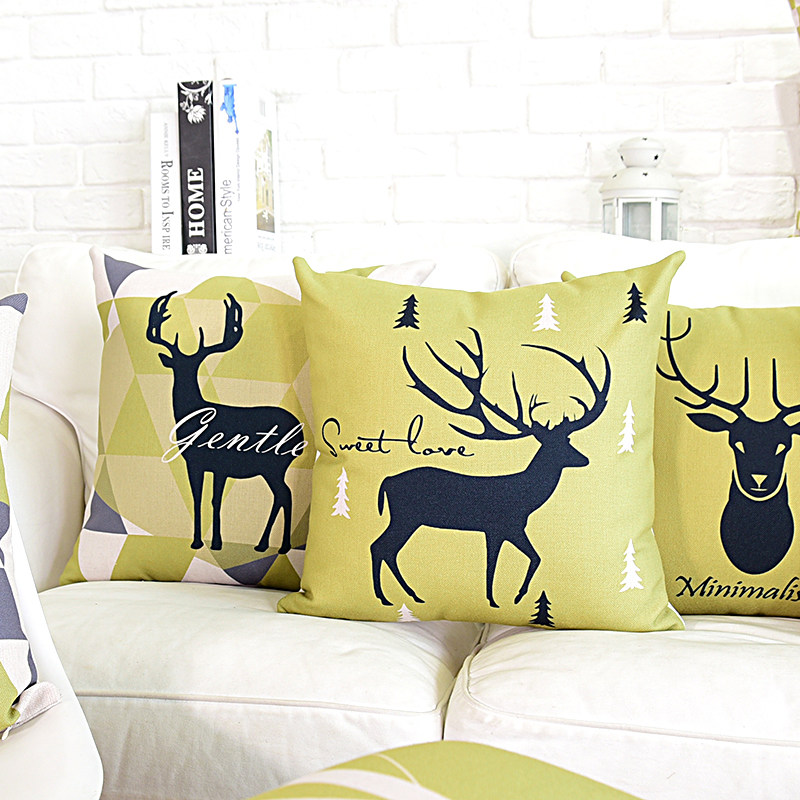Smear Color Nordic Cotton Numb Holding Pillow Cover Living-room Sofa Cushions Office Holding Ram Car Elk Deer Back Cushion Cover