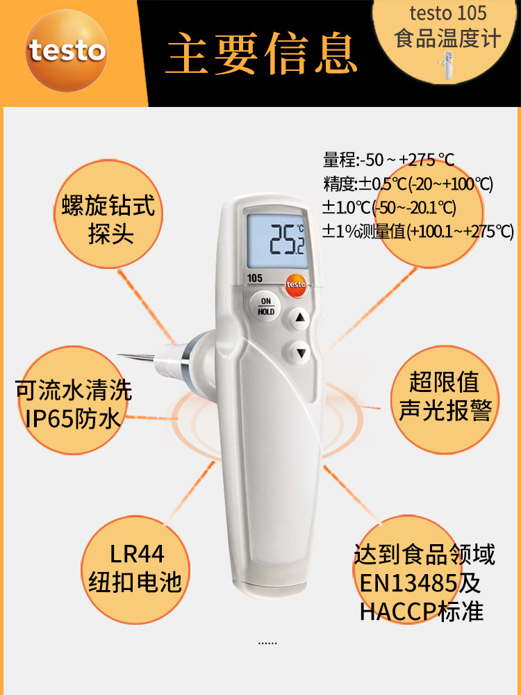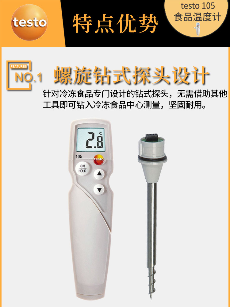Detu testo105 Thermometer for Frozen Food Spiral Drilling 0563 1054 Long Monitor Optional