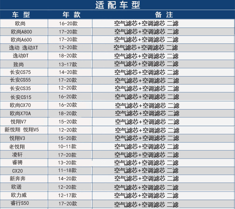 Adapted to Changan Auchan CS15 Yuexiang V3V7 Xinyi Dong Shang CS55 air conditioning filter air filter