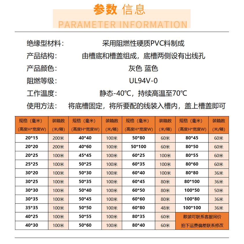 Grey PVC flame retardant trunking U type distribution cabinet cable routing line 25 25 30 30 50 50 60 80100