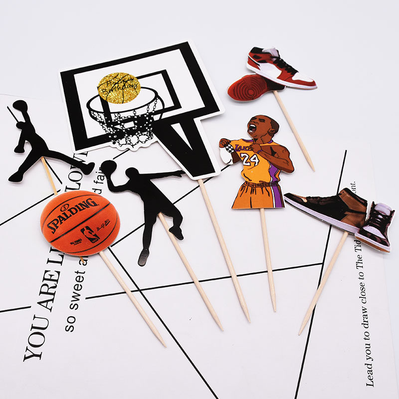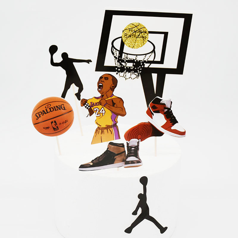 Basketball theme cake plug-in boys boys basketball basket shoes birthday cake decoration plug-in