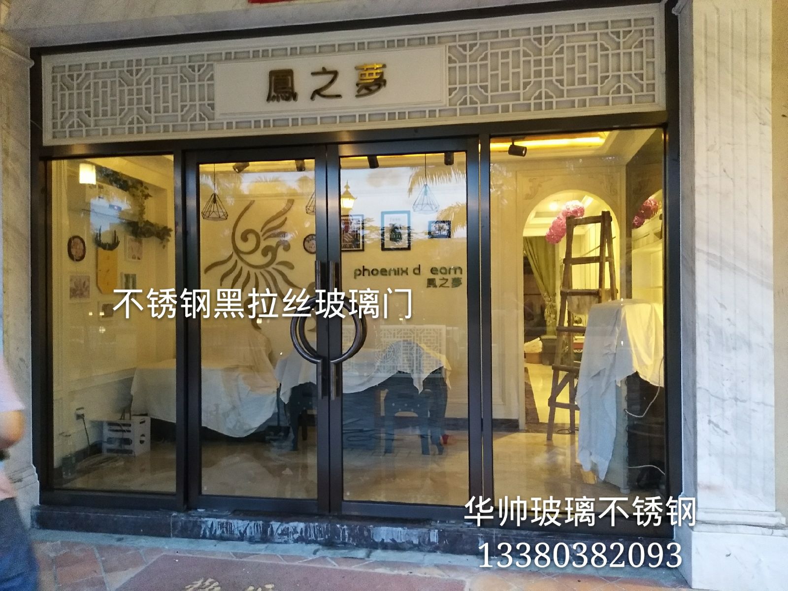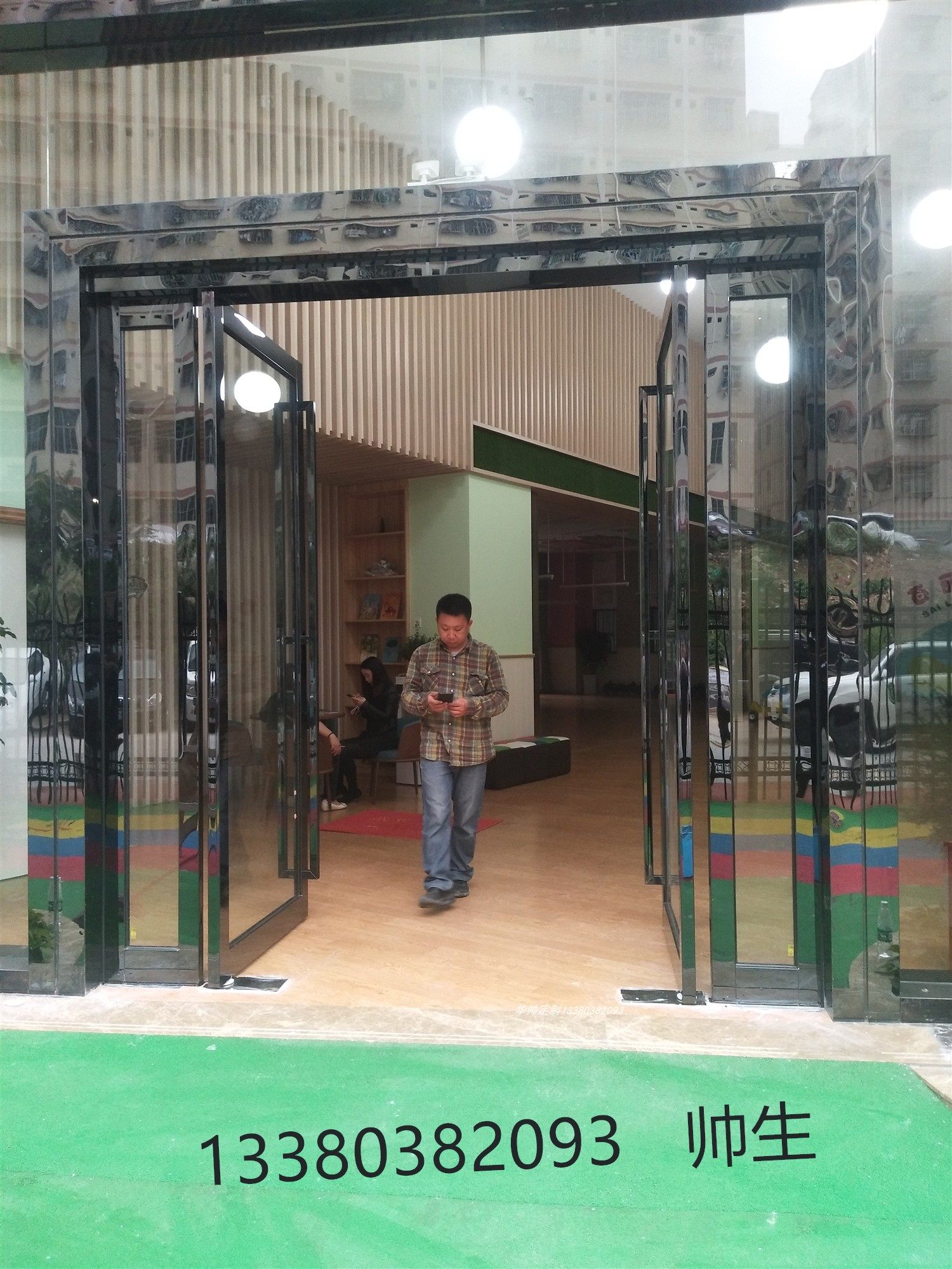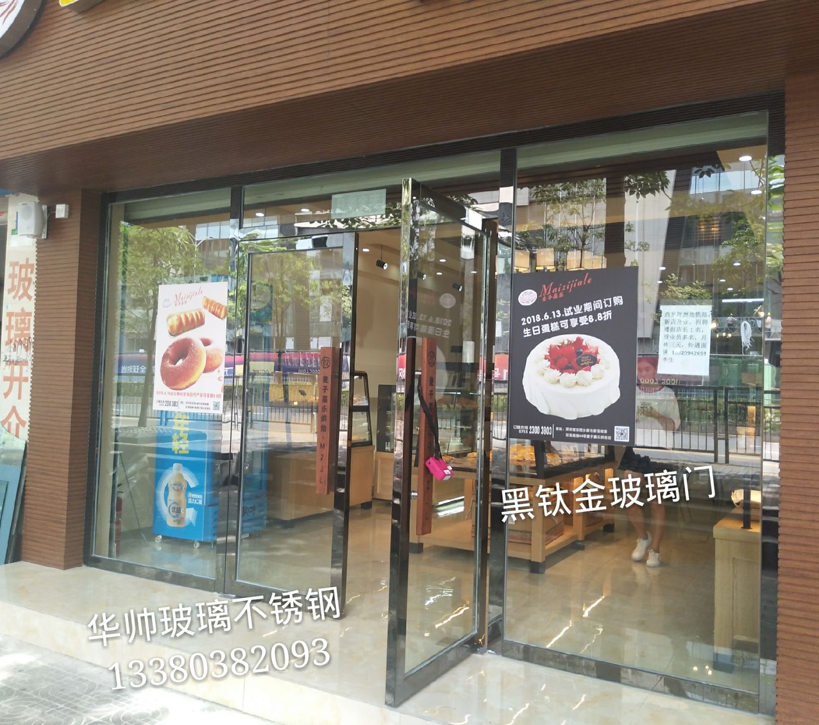 Shenzhen custom tempered glass door shopping mall store glass door stainless steel rose gold black titanium glass door