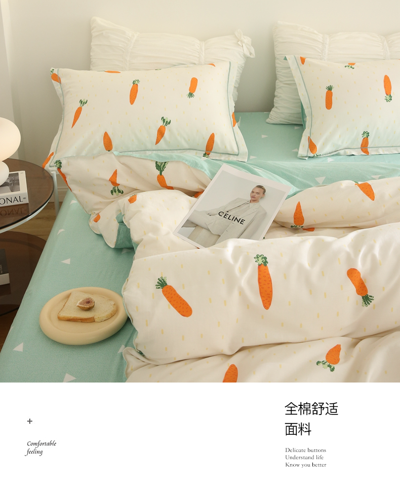 Hengfa Home Textiles Pure Cotton Four-piece Cotton 1 5m Sheet 1 8m Fitted Bedding 1 2 Student Three-piece Set
