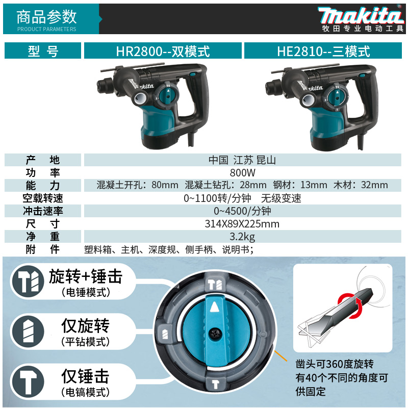 Makita HR2800 HR2810 Rotary hammer Multi-function impact drill Electric pick Concrete drilling and grooving