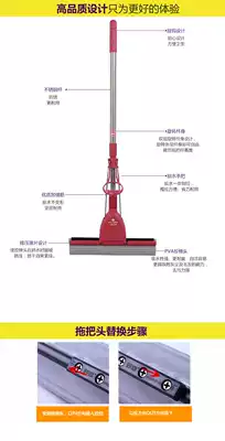 Miaojie sponge mop Hands-free large water-absorbing and squeezing powder room glue cotton mop head Home roller type floor mop