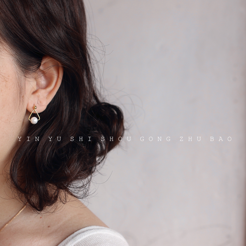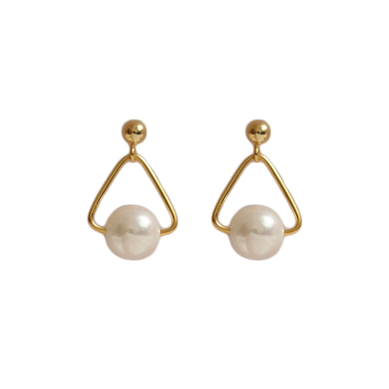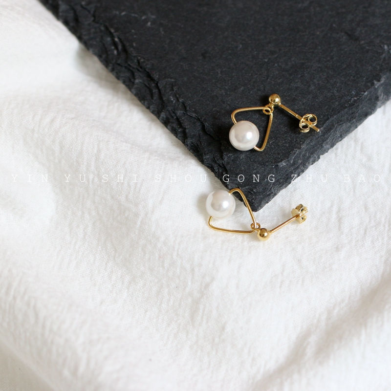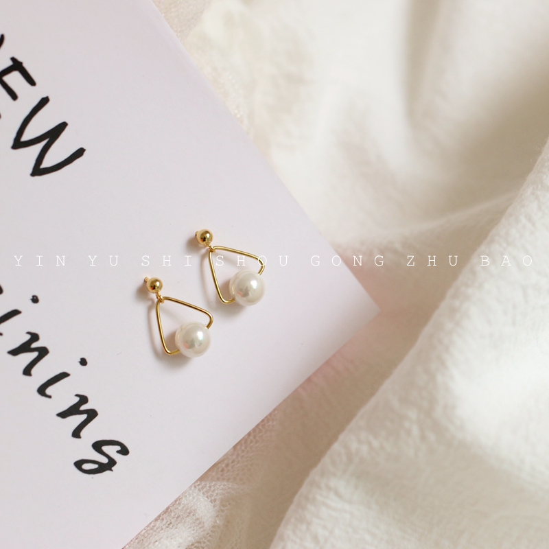 Pearl Stud Earrings 925 Silver Note 14K Gold Simple Geometric Triangle Earrings Temperament Elegant Short Earrings Women