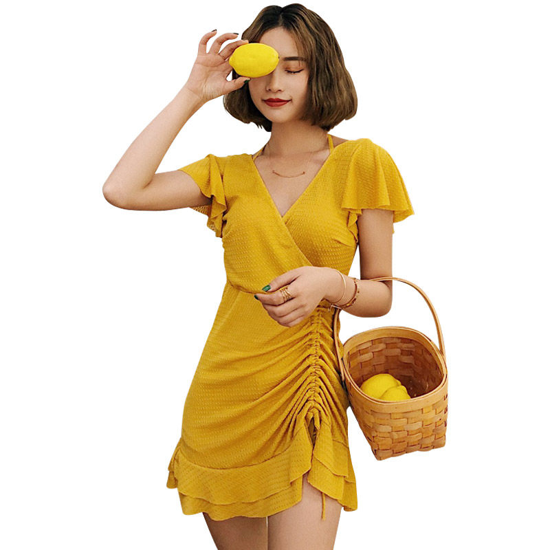 DK2022 New Swimsuit Woman with a small chest gathering conservative shade and lean bubble hot spring Korean in wind