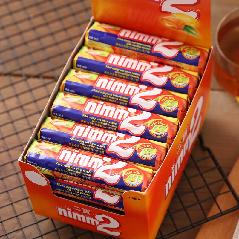 Germany imported Hong Kong version of Erbao sugar orange lemon sandwich sugar juice children's snack vitamin 9 capsules 50g