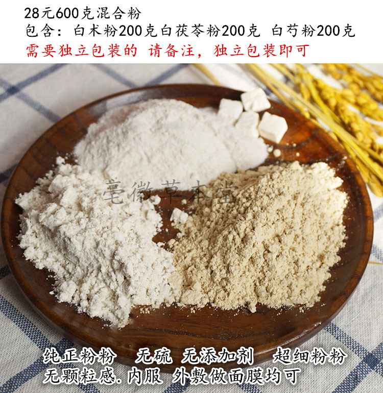 Three white powder, Baizhu powder, white peony powder, white tuckahoe powder, total 600 grams, mixed with 28 yuan, sulfur-free superfine mask powder