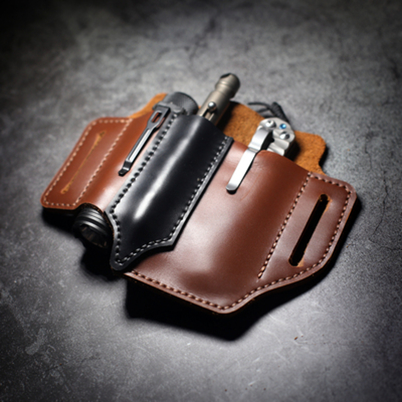 Tactical belt storage wallet attack pen flashlight knife carrying EDC multi-purpose waist clip leather sheath knife sleeve