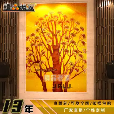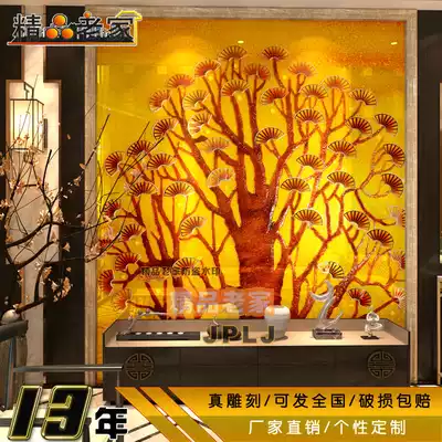 Modern simple new Chinese carved tempered patch decorative art glass home decoration background wall fortune tree 1169