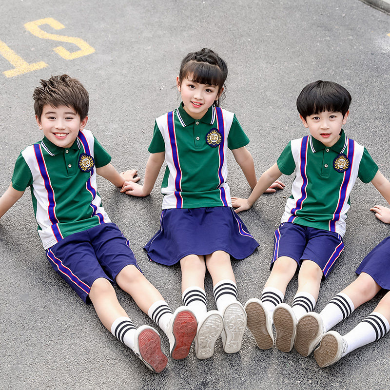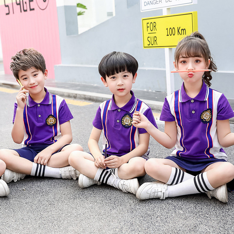 College Wind Purple School Clothing Suit Elementary School Kids Summer New Class Clothes Pure Cotton Short Sleeve Teacher Clothes Kindergarten Garden Clothes