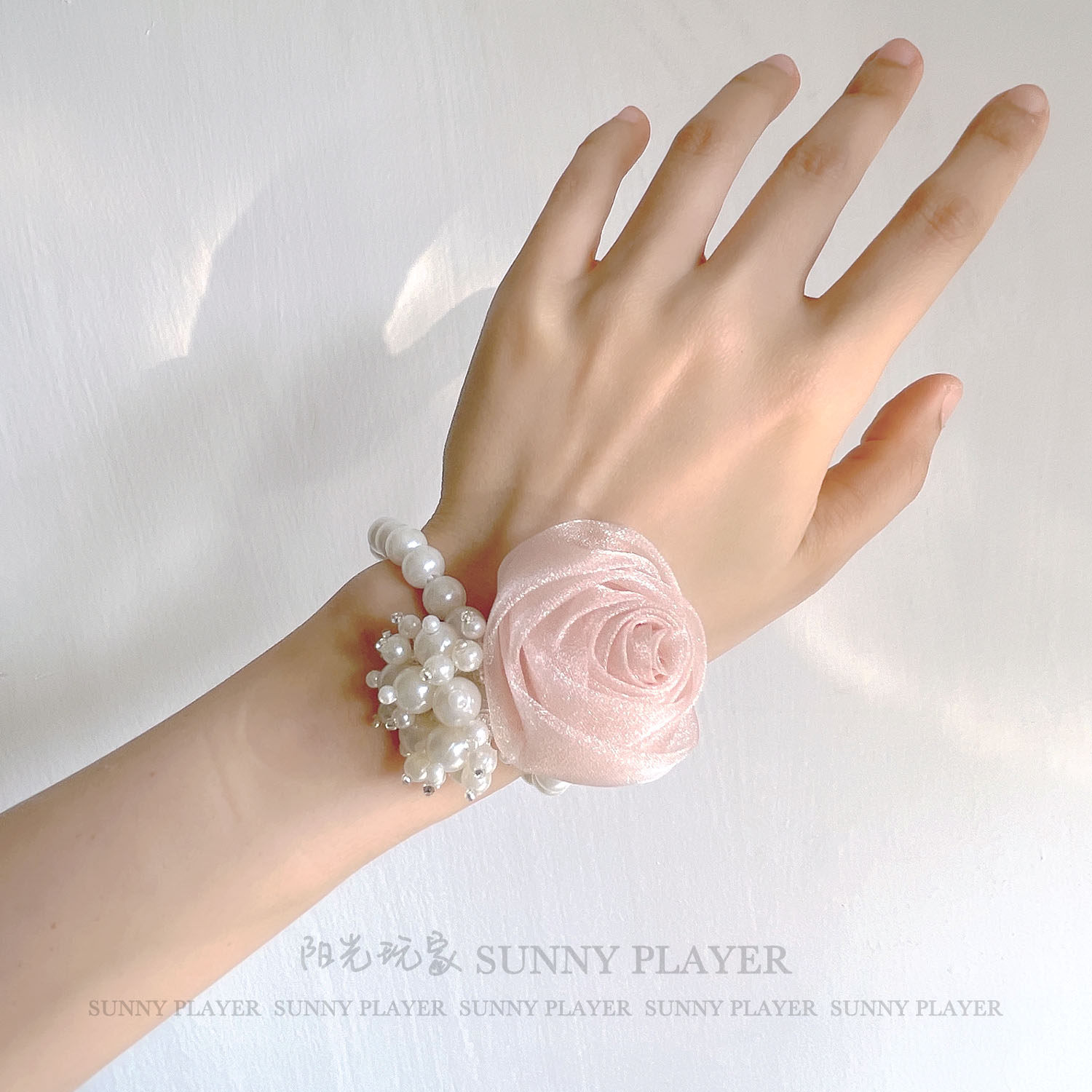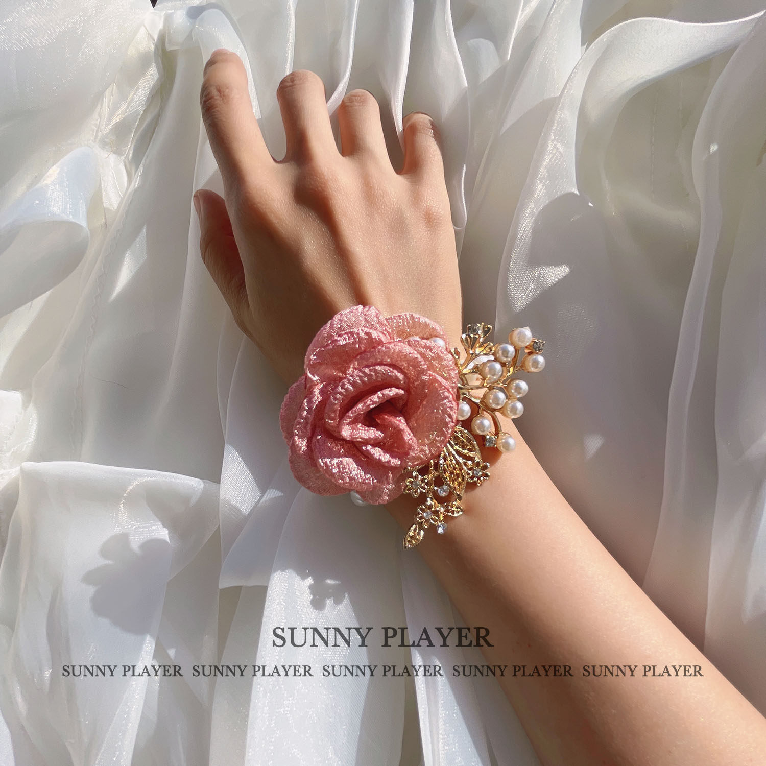Wrist flower new couple wedding bride bridesmaid sister group pink lace senior fresh hand flower performance bracelet flower