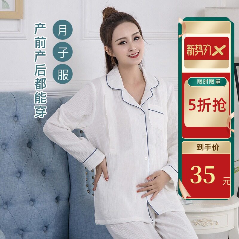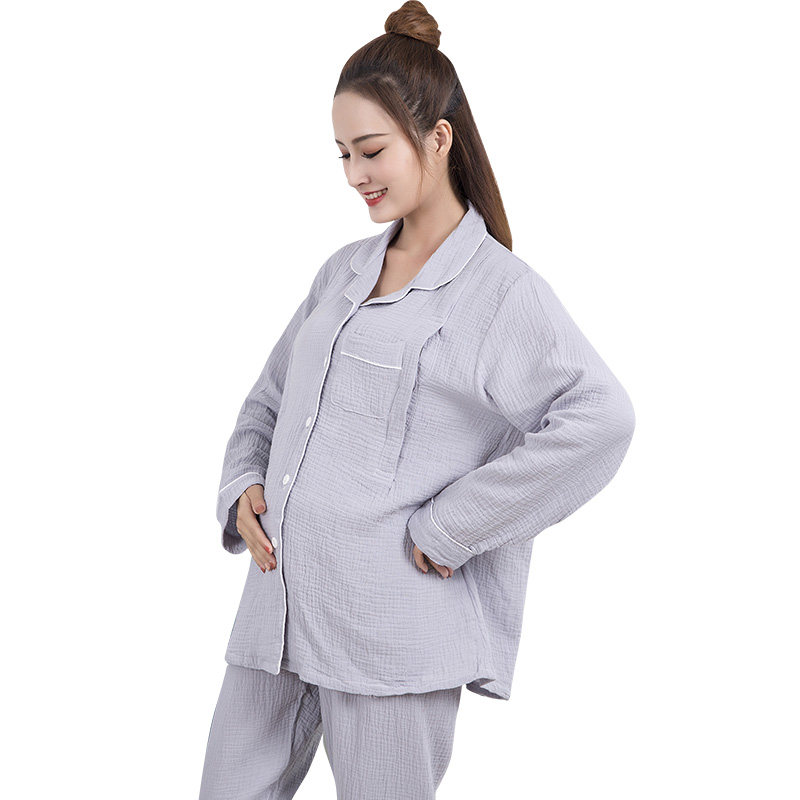 Pregnancy nemesis cotton crepe cloth suction sweat washed gauze long sleeve lunar subsuit pregnant woman postpartum laces pyjamas pyjamas home clothes