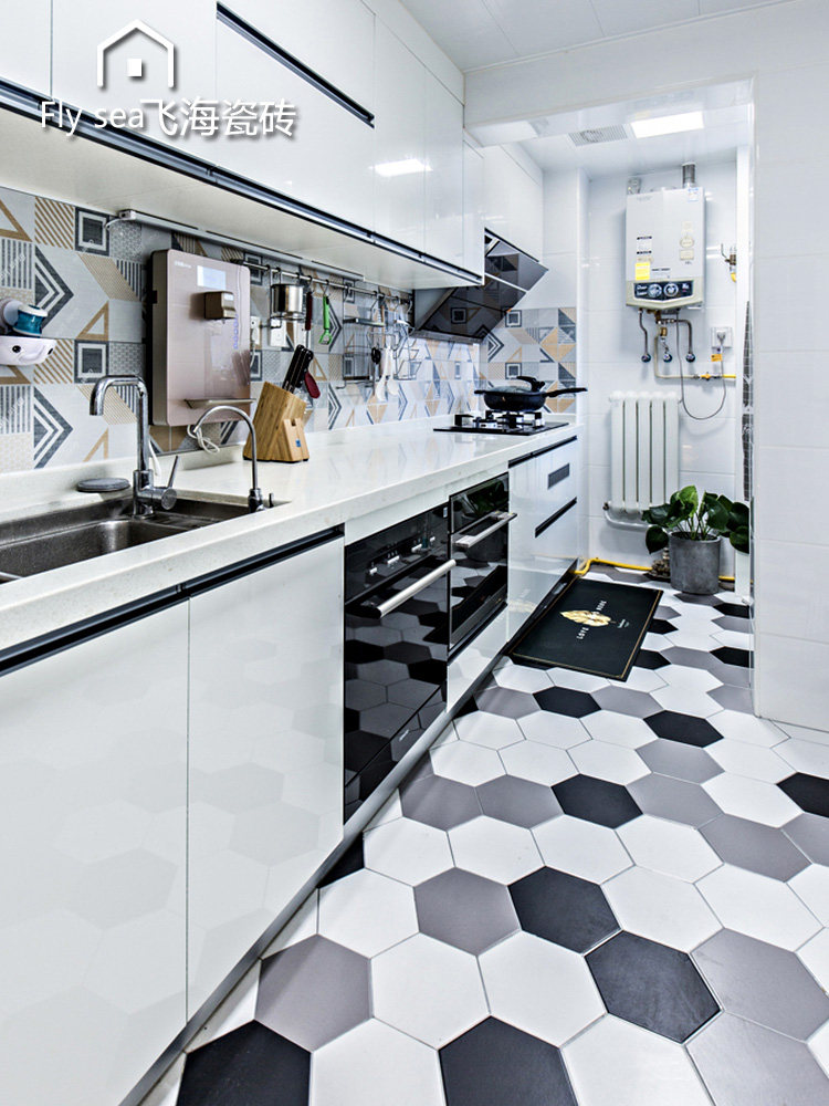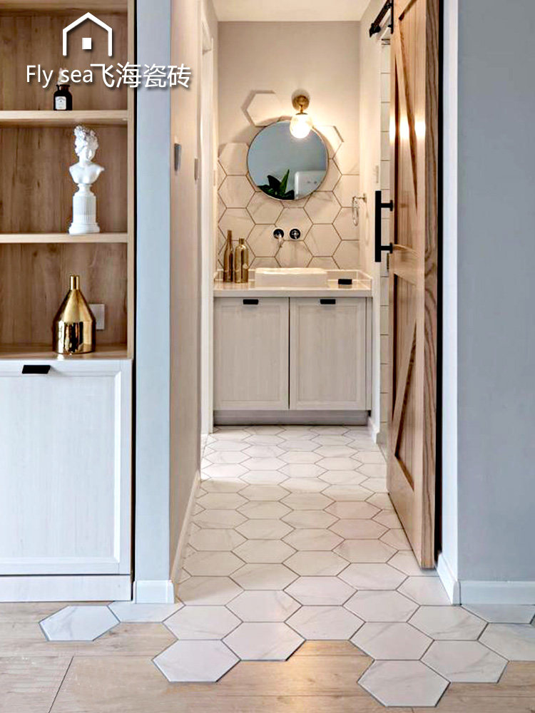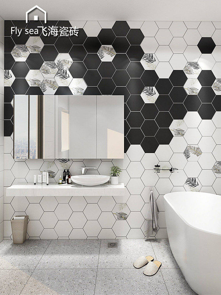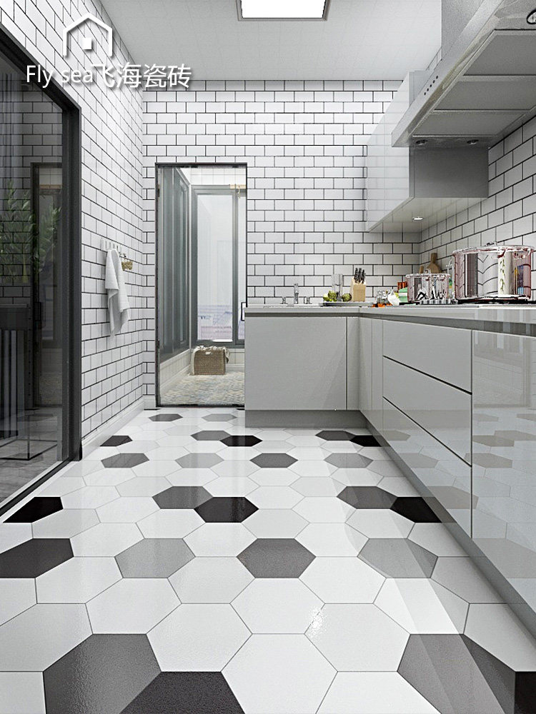 Hexagonal brick Nordic simple hexagonal tile tile gray solid color jazz white kitchen floor tile bathroom wall tile