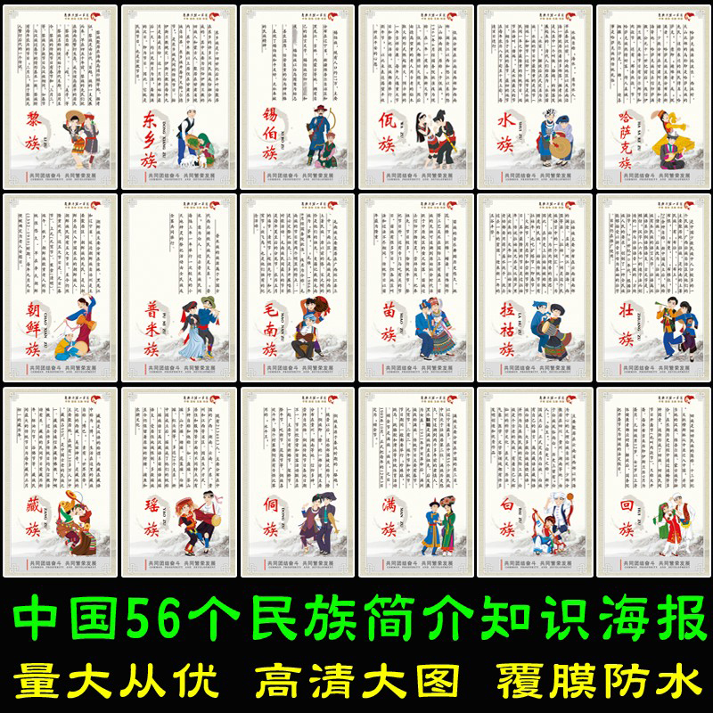 China's 56 national posters design campus culture children early teaching minority profile self - adhesion chart