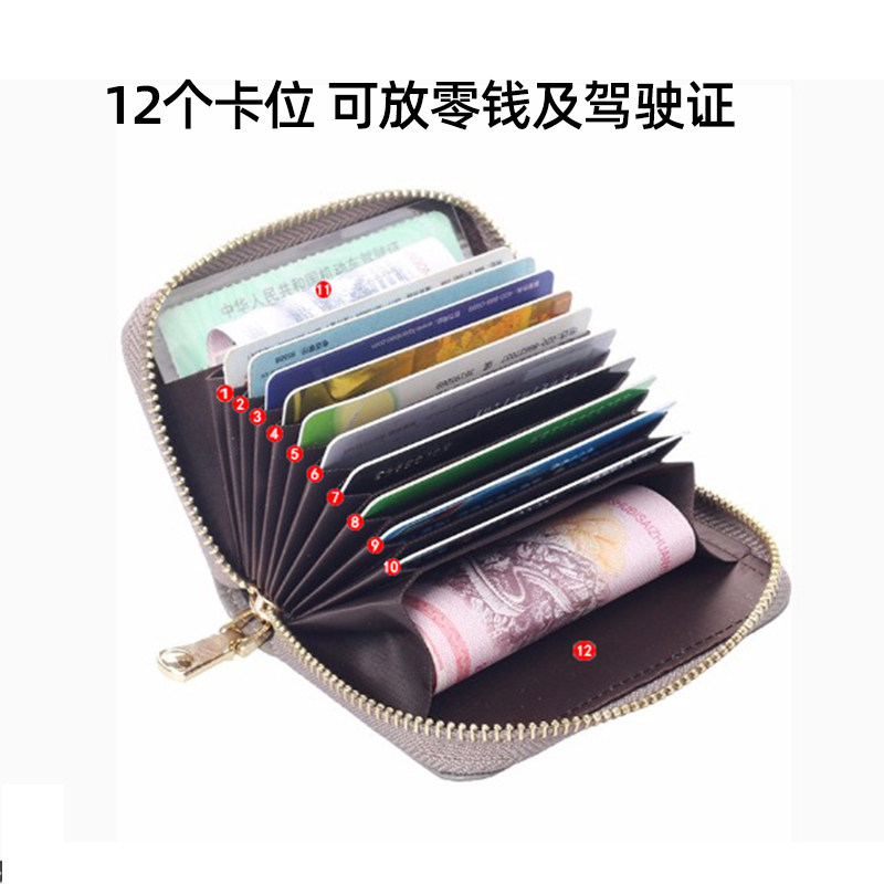 Wallet card bag Female real leather anti-theft brush Multi-card ID card bag Large capacity card clip Small card sleeve Anti-demagnetization
