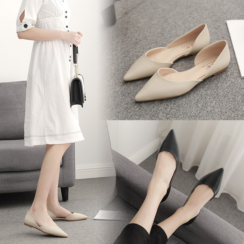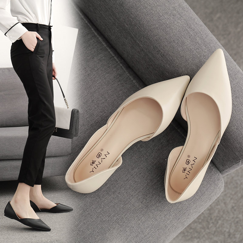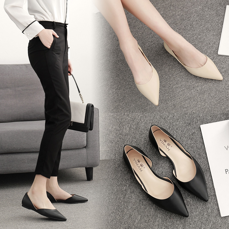 Shallow pointed single shoes lady floor 2023 summer small black shoes female professional soft sole code 33 yards and shift shoes