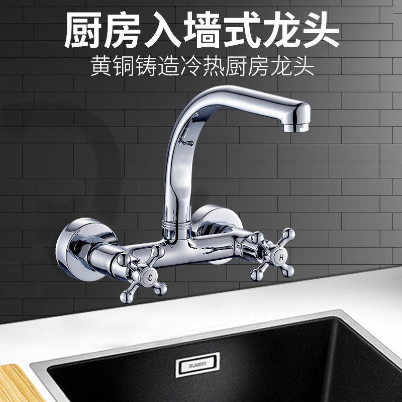 Kitchen Sink Wash Basin full copper Double Entrance Wall Type Universal Type Hot And Cold Tap Laundry Pool Balcony water mixing valve