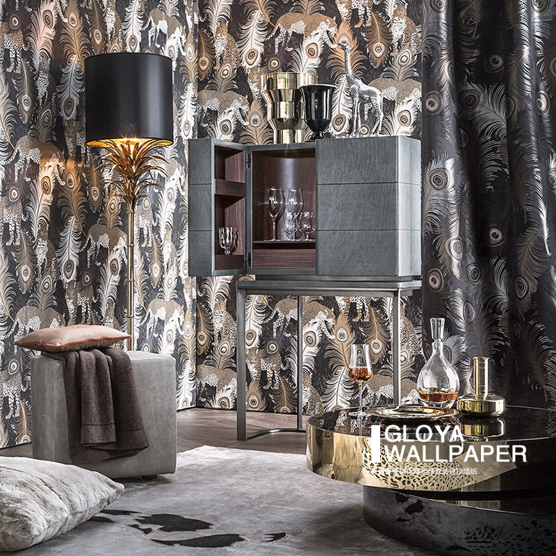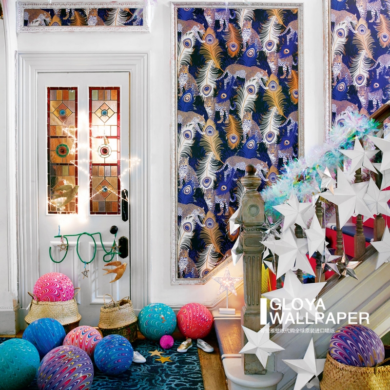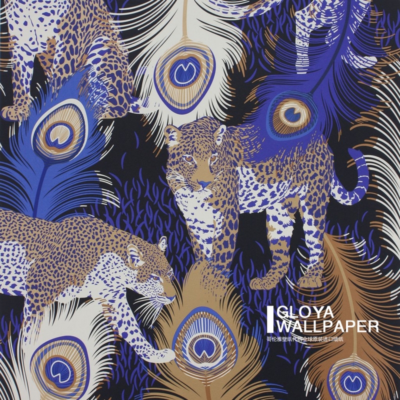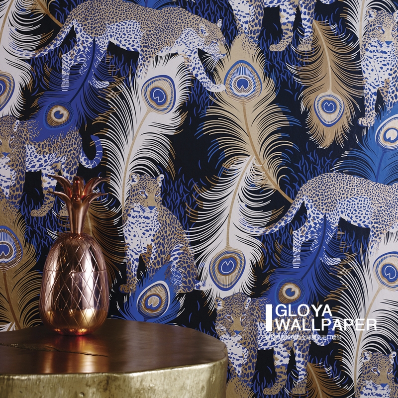 British wallpaper blue feathers BAO WEN Matthew Williamson Leopardo Wallpaper