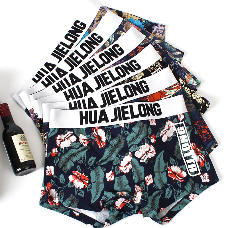 Huajielong cotton men's underwear boys boxer pants youth personality trend low waist Korean version boxer pants