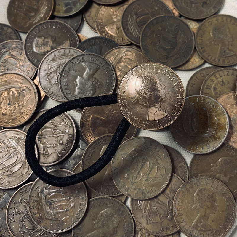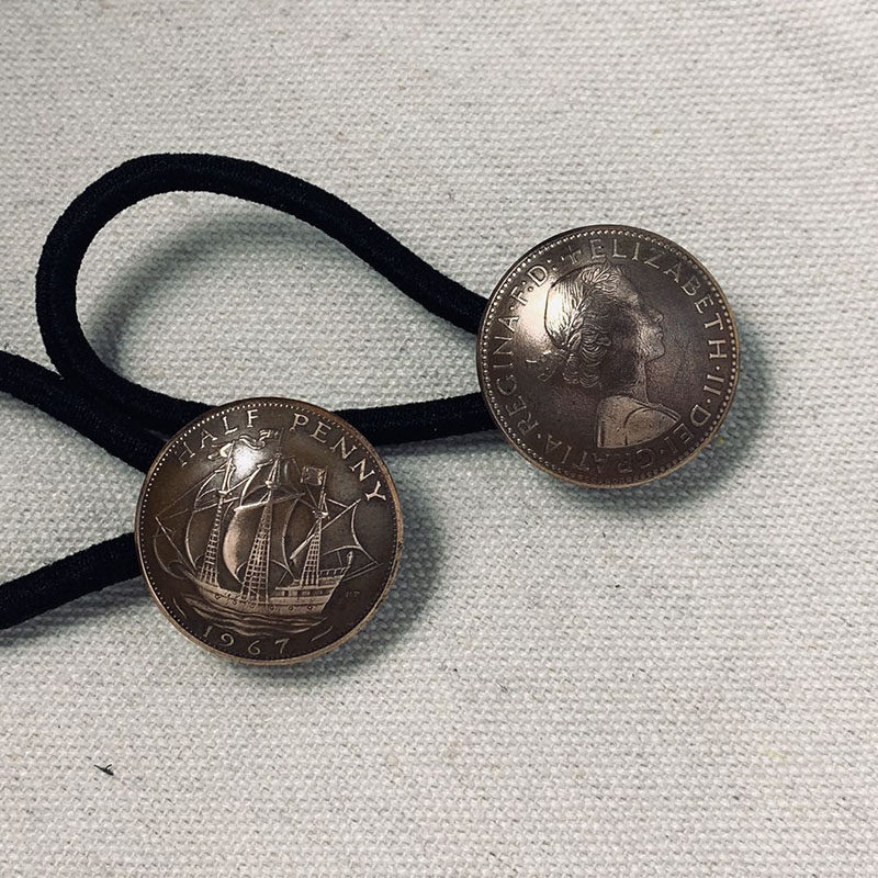 Square towel buckle rubber band buckle hair ring retro Japanese style cloth buckle real coin buckle men and women handmade