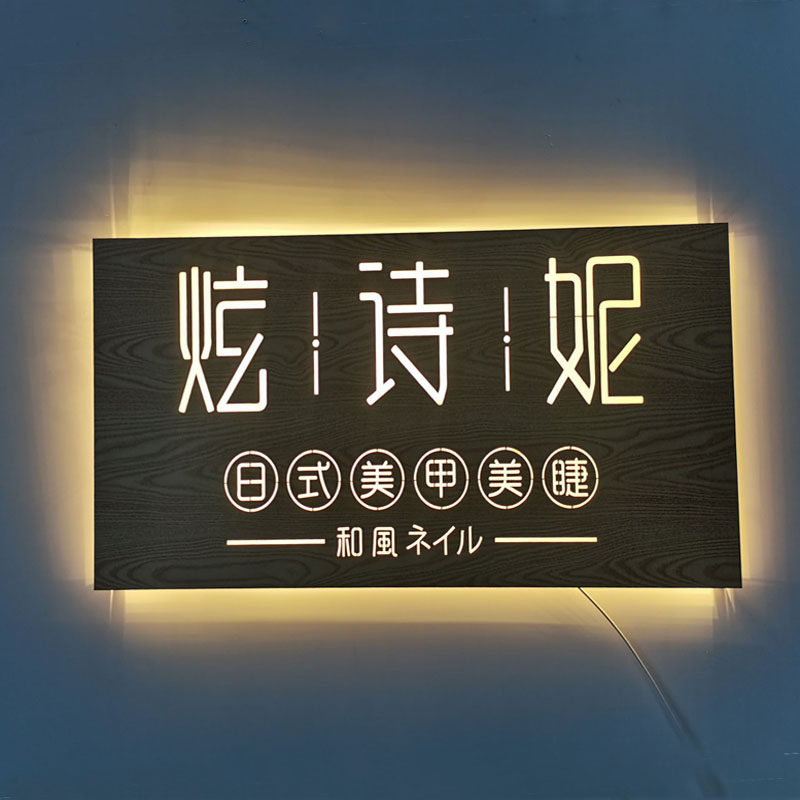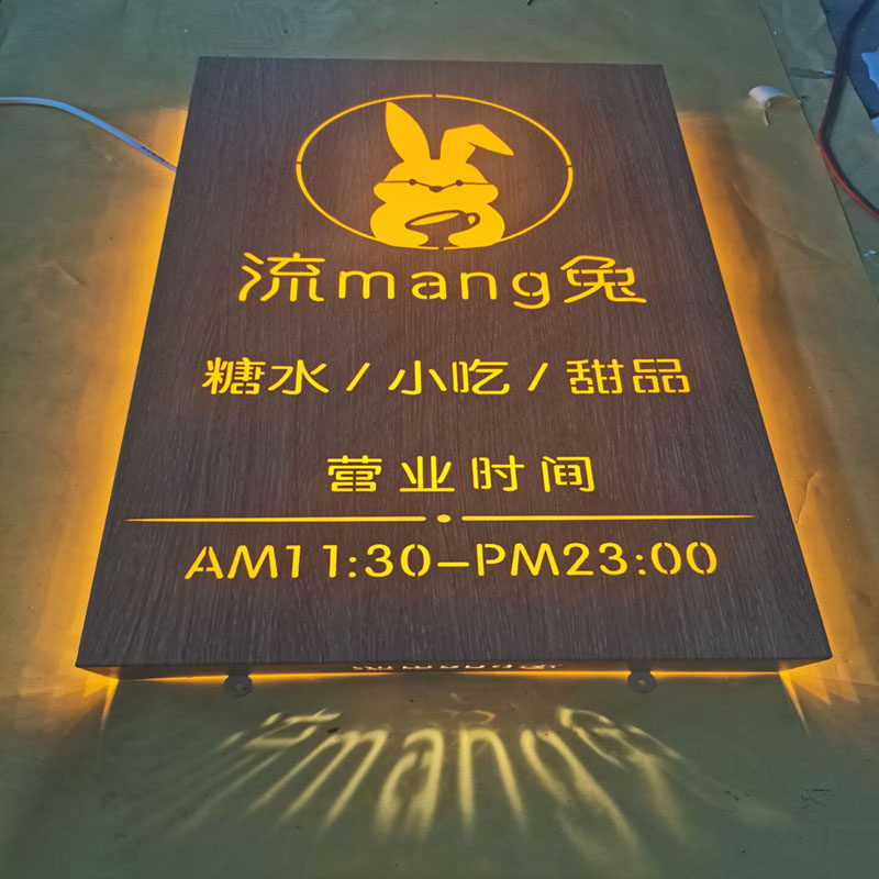 Creative metal imitation wood grain hollow light box billboard custom personality outdoor door head hollow signboard custom