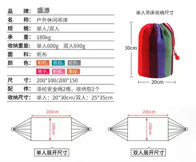 Outdoor leisure hammock hanging chair thick canvas tie rope double children College dormitory bedroom Dew camping Swing Swing