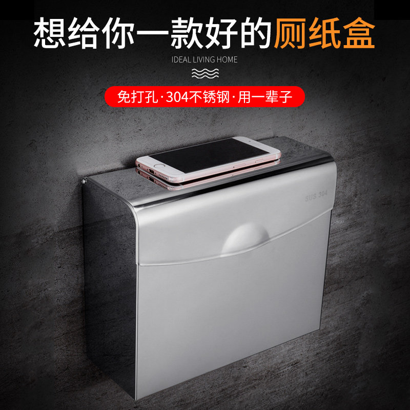 Toilet paper box toilet paper box Toilet paper box Waterproof household punch-free toilet 304 stainless steel