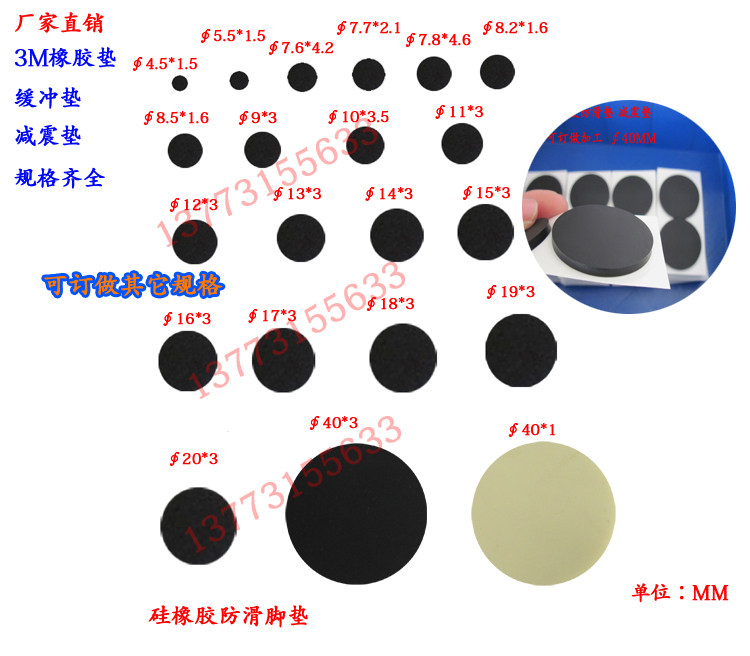 Rubber mat environmentally friendly self-adhesive 3M back adhesive pad computer case pad foot table and chair anti-shock anti-crash foot pad 50 * 3MM