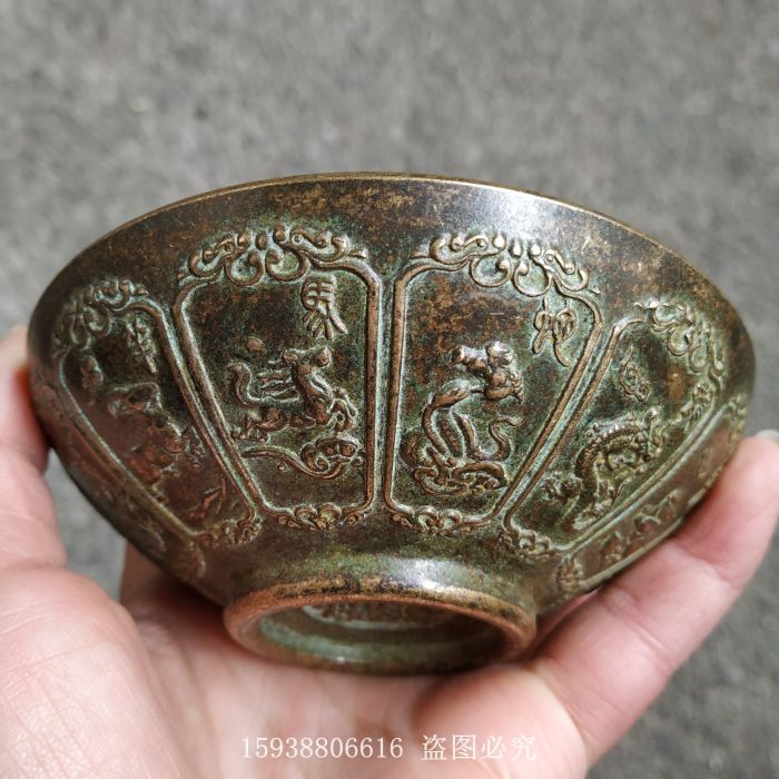 Ancient Play Miscellaneous Bronze Ware Old Objects Old Bronze Ware With Green Rust Pure Bronze Duozodiac Bowls Antique Miscellaneous Items Collection Hem