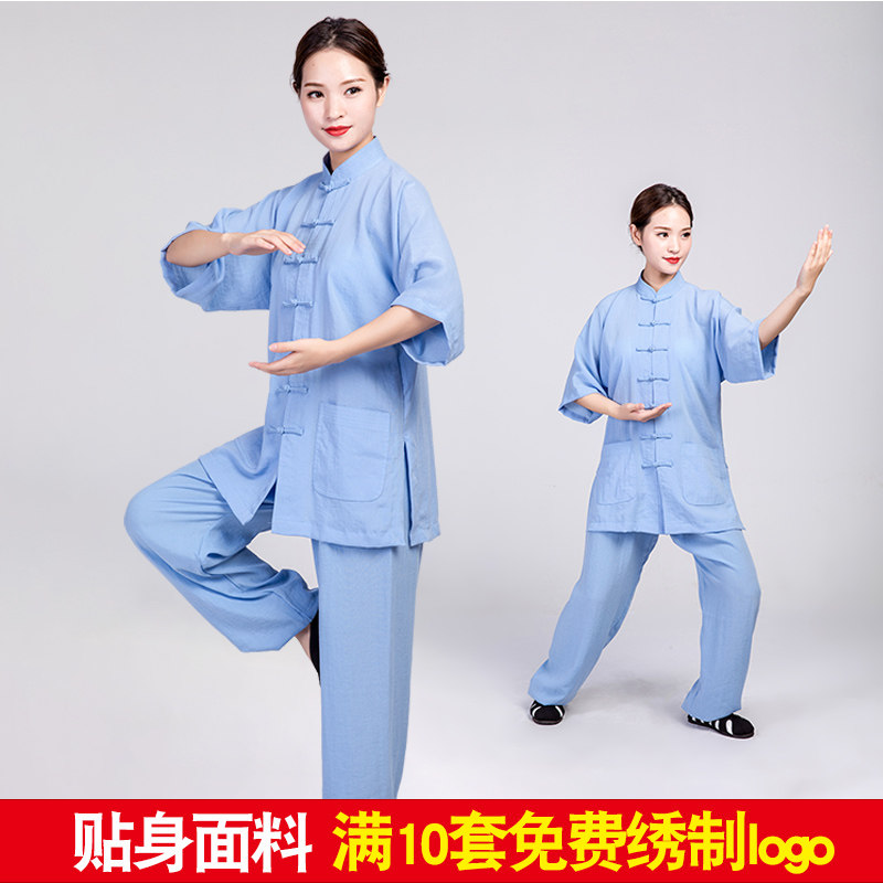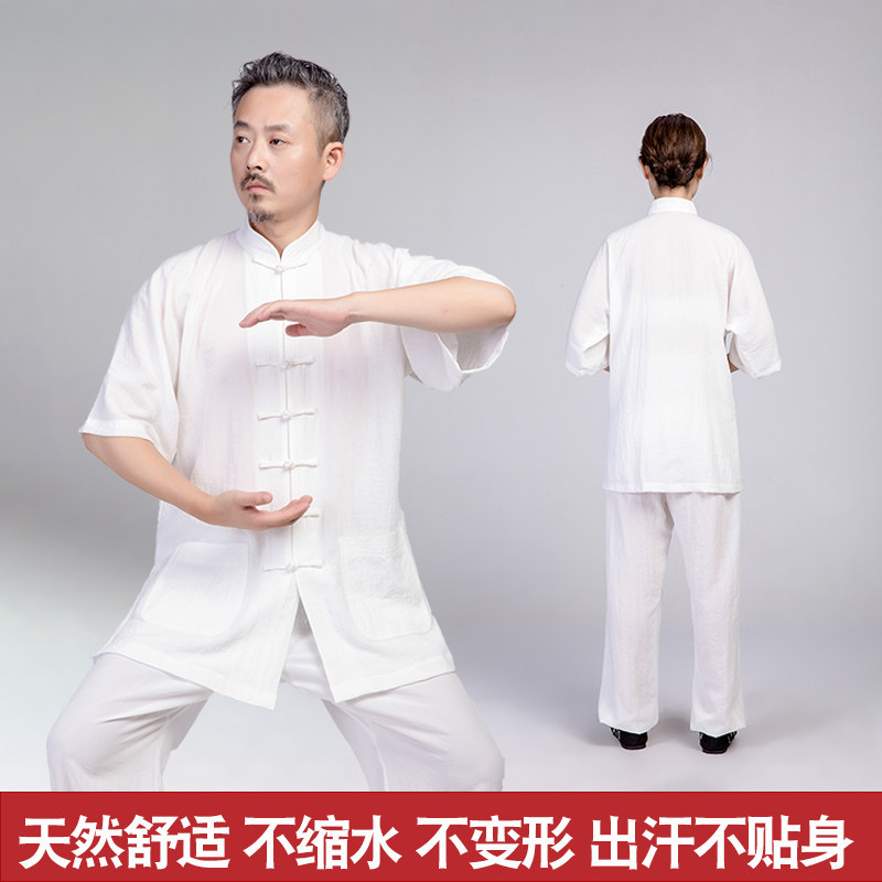 Linen Tai Chi Clothing Women's Summer Thin style short sleeves cotton linen Chinese Wind Performance martial arts Taijiquan Costume Men-Taobao