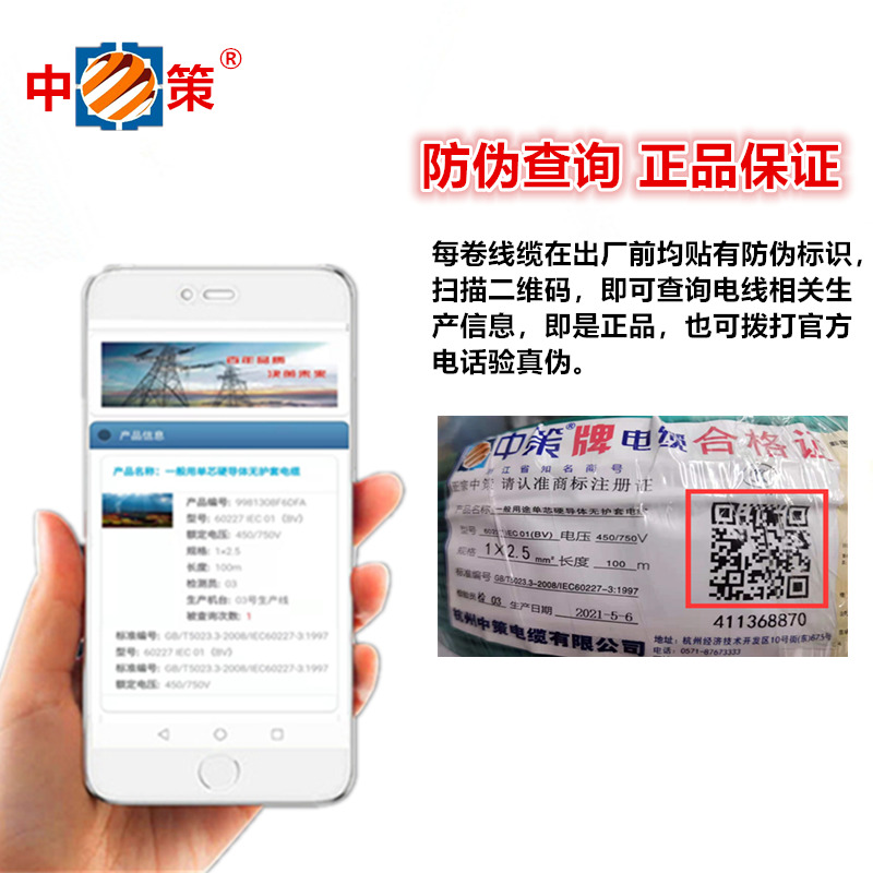 Hangzhou Zhongce Wire BV1 1.5 2.5 4 6 square single core single share national standard copper core wire foot meter