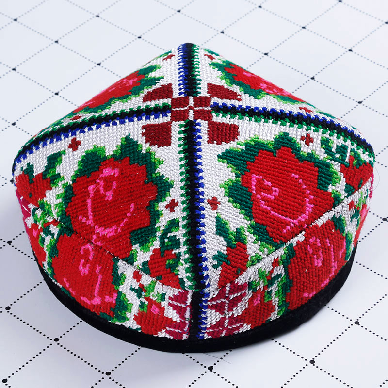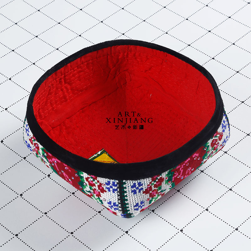 Xinjiang small flower hat Uyghur dance costume women's four-corner cross-stitch headdress embroidered hat dance hat