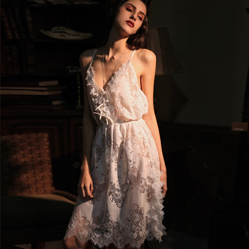 Lemon Sexy Pajamas Woman Autumn Winter Lace Dress Delight Sleeping Clothing Side Open Fork Seductive Harness Sleeping Skirt Woman Underwear