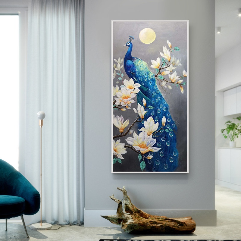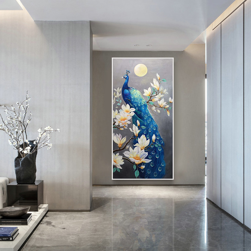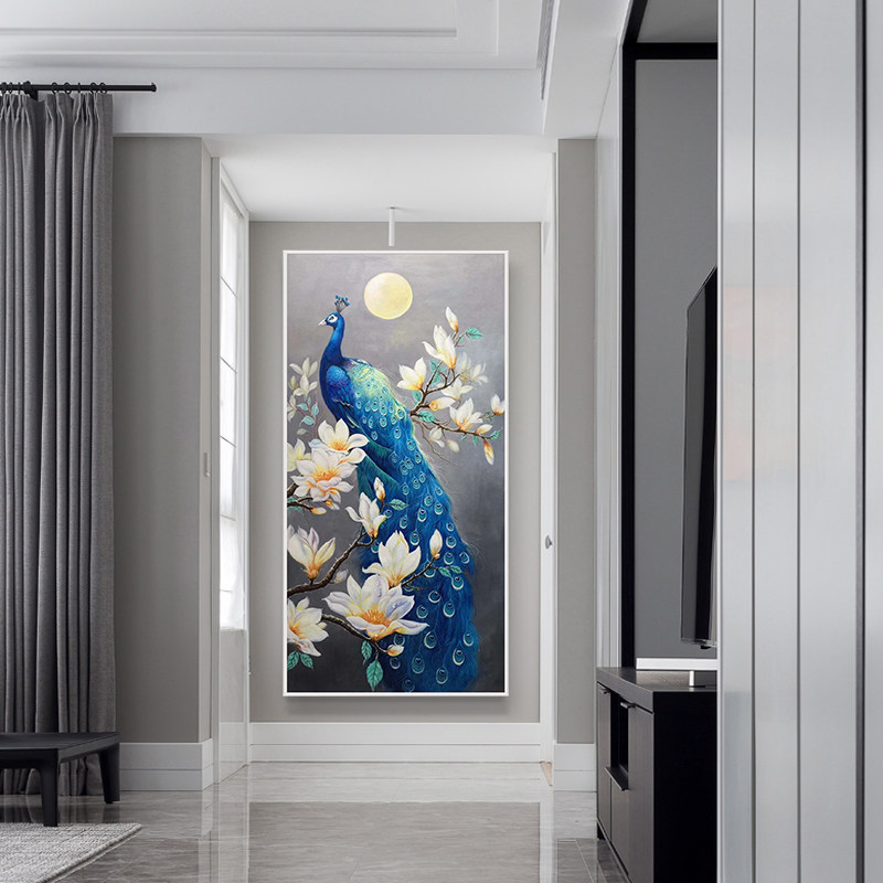 Hand-painted oil painting peacock decorative painting American-style living room porch corridor mural Chinese-style aisle hanging painting dining room villa