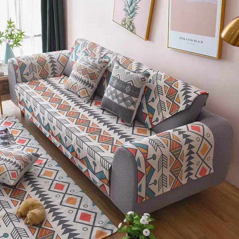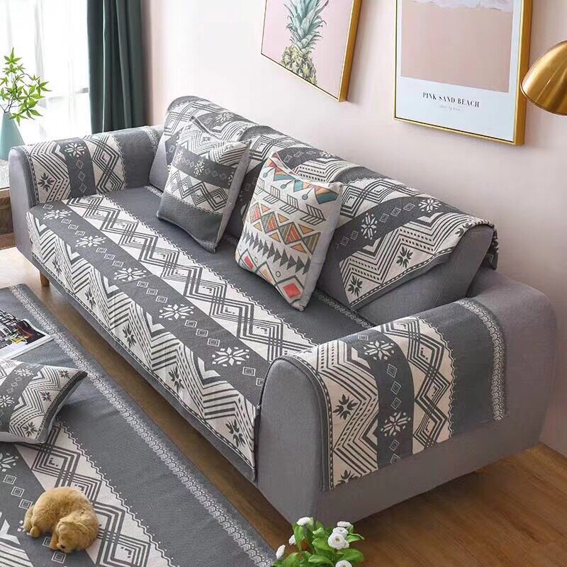 Nordic wind cotton linen sofa cushion non-slip four seasons universal set anti-static fabric coarse cloth linen sofa towel living room